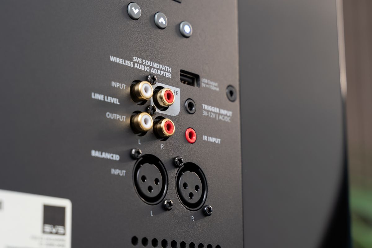 The back panel includes connections for single-ended RCA cables, or the quieter, balanced 3 pin cable connection. You can use SVS’ handy wireless audio adaptor if you must position the sub in a spot where you can’t easily run a connecting cable.